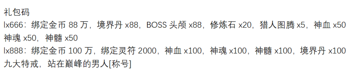 礼包码:gm999