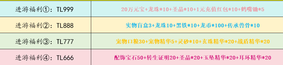 lx888:聚灵珠[大]*10,超级祝福油*10,开荒碎片*20,四圣石*20